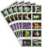 Celebrates the beauty of Wild Orchids with Stamps of flowers that grow in the United States. The stamp art highlights photos taken by photographer Jim Fowler. Art director Ethel Kessler designed the Stamps. Each stamp features a photograph of one of these nine species: Cypripedium californicum, Hexalectris spicata, Cypripedium reginae, Spiranthes odorata, Triphora trianthophoros, Platanthera grandiflora, Cyrtopodium polyphyllum, Calopogon tuberosus, and Platanthera leucophaea. Within the booklet, each stamp design is featured twice.